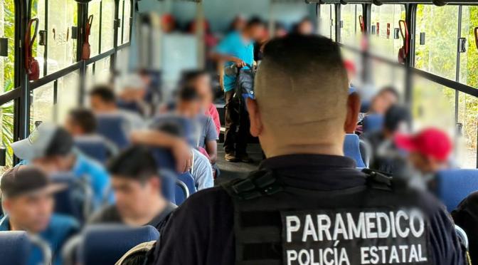 Cabe señalar que el día de hoy elementos estatales resguardan a un contingente de más de 500 personas extranjeras que ingresaron al estado provenientes de Oaxaca, por lo que los uniformados apoyan en custodiar y evitar que sean víctimas de algún incidente que ponga en riesgo su integridad, a la altura de la localidad Suchilapan del Río, en el entronque con la desviación del mismo nombre.