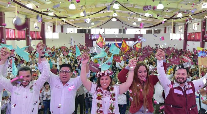 “Y nos anotamos varios compañeros y hablan de unidad, la unidad no nada más la estamos diciendo, dentro de esos compañeros por ejemplo, la compañera Claudia Tello iba también acompañándonos en este proceso, el compañero Zenyazen Escobar que aquí está Zenyazen, el compañero Manuel Huerta que va a ser nuestro candidato al senado de la República, e inmediatamente le dimos la vuelta y empezamos a trabajar en unidad”, afirmó.