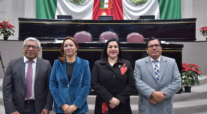 En cumplimiento de lo dispuesto en el Artículo 33 fracción XXXIII de la Constitución Política local y Artículo 40 de la Ley Orgánica del Poder Legislativo, la diputada Rosalinda Galindo Silva y los diputados José Magdaleno Rosales Torres y Genaro Ibáñez Martínez, presidenta, secretario y vocal de la Comisión Permanente de Hacienda del Estado, recibieron la comparecencia de la titular de la Contraloría General del Estado (CGE), Mercedes Santoyo Domínguez.