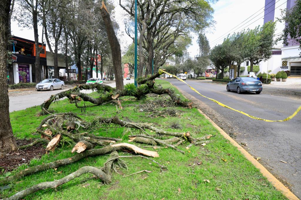 Xalapa, Ver.- Derivado de los efectos del Frente Frío Número 16 que generó vientos fuertes desde la mañana hasta el mediodía, la Dirección de Protección Civil en coordinación con las áreas operativas municipales han atendido hasta el momento un promedio de 25 árboles caídos.