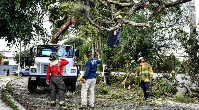 El director de la dependencia, Luis Sardiña Salgado, expuso que además de personal de las direcciones de Medio Ambiente y Alumbrado Público se cuenta con el respaldo de trabajadores de la Comisión Federal de Electricidad (CFE) para brindar la atención a las instalaciones eléctricas, así como a postes de alumbrado público que también resultaron afectados.