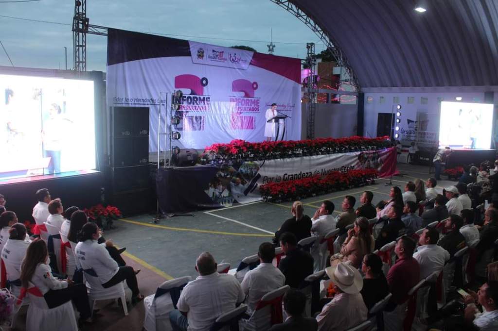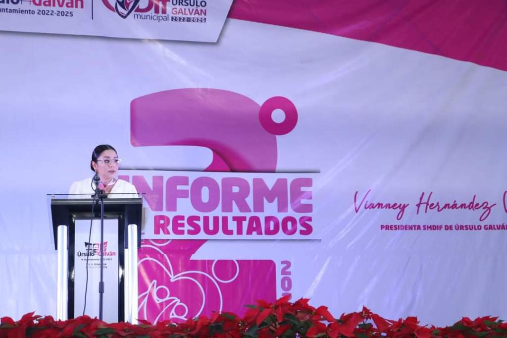 Úrsulo Galván, Ver. – Llevando sonrisas, esperanza y sobre todo un trato humano, cálido y cercano, la presidenta del Sistema DIF municipal, Lic. Vianney Hernández Vizuet, rindió su segundo informe de resultados, en compañía del alcalde, Lic. Eder Jero Hernández Lara, los ediles del honorable cabildo del H. Ayuntamiento, distinguidos invitados especiales y familias galvanenses presentes en el domo de la cabecera municipal.