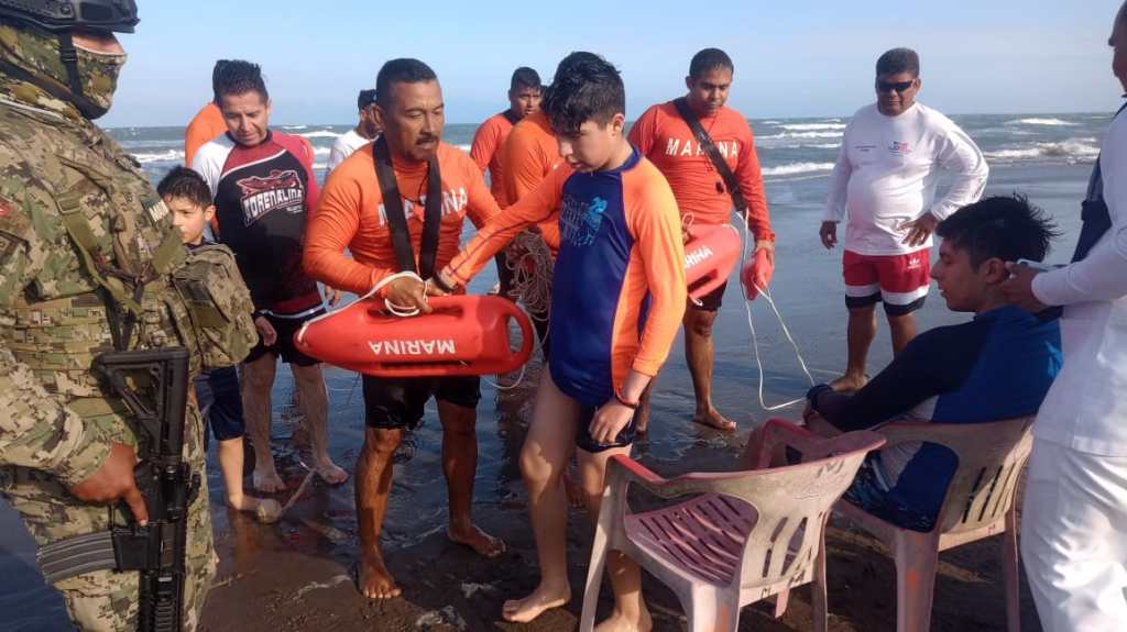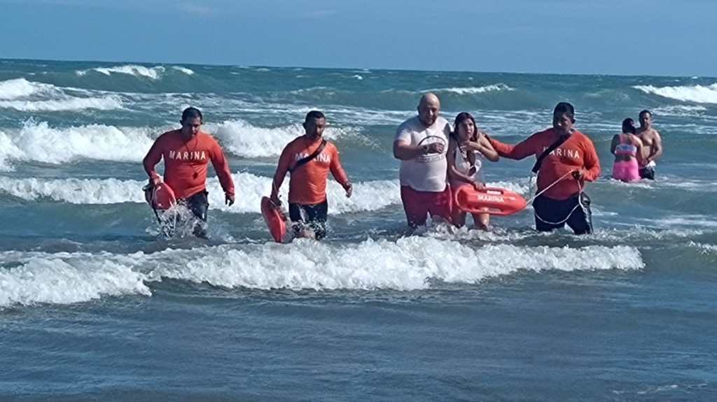 Xalapa, Ver.- Un total de cinco personas, dos adultos y tres menores fueron rescatadas por elementos de la Secretaría de Marina con apoyo de la Unidad de Protección Civil de Úrsulo Galván, en las playas de Chachalacas, durante la jornada del jueves.