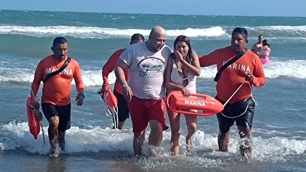 También se reportó el rescate de 2 personas adultas, un hombre de 36 años y una mujer de 25 años, originarios de la Ciudad de México, quienes fueron arrastrados por un salidero mar adentro por la corriente.