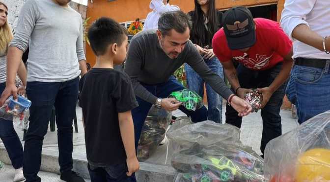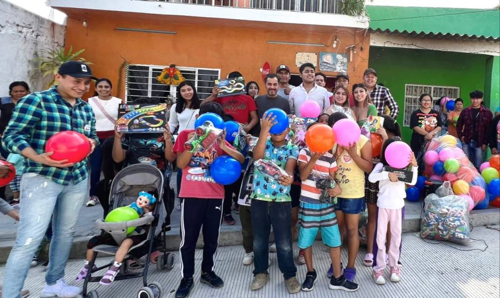 Durante su visita, el legislador del Distrito Emiliano Zapata junto a integrantes de la agrupación juvenil Liderazgo Constitucional, compartió un momento agradable con los pequeños, quienes se mostraron emocionados al recibir regalos para disfrutar con sus amigos y familiares.