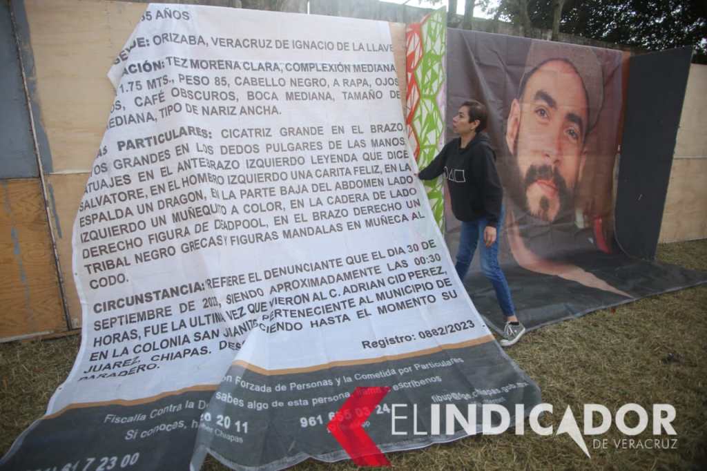 La hermana de Adrián, Ingrid del Carmen Cid se manifestó en las cercanías donde el presidente Andrés Manuel López Obrador llevó a cabo la conmemoración del 117 Aniversario de los Mártires de Río Blanco para solicitar su ayuda en la localización del jóven.