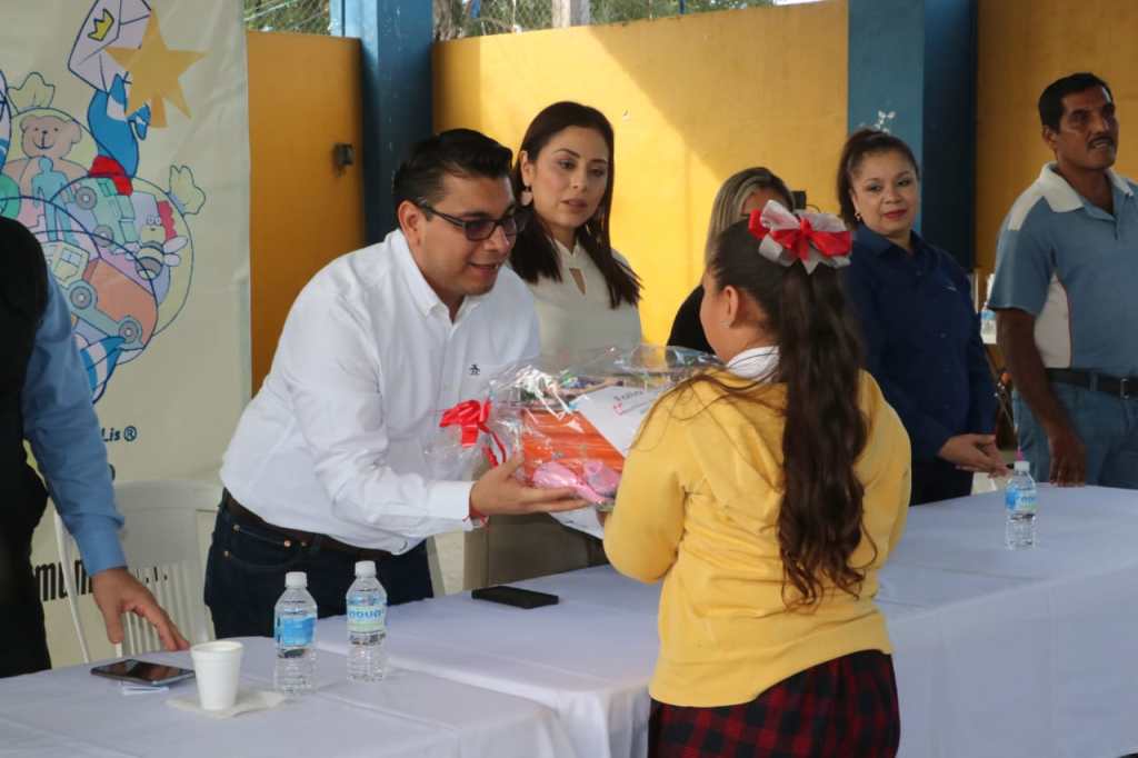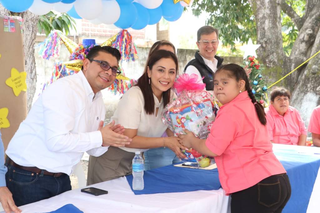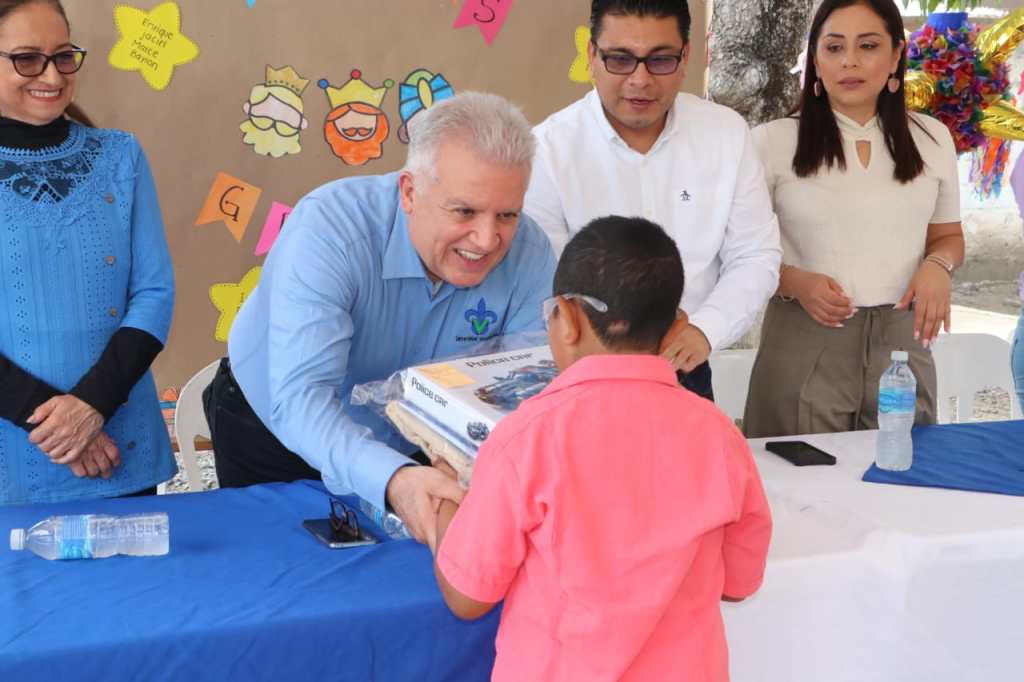 Úrsulo Galván, Ver.– En el marco del Día de Reyes, gracias al convenio de colaboración institucional entre la Universidad Veracruzana (UV) y el H. Ayuntamiento, así como las gestiones del sistema DIF municipal, este jueves 11 de enero, se llevó a cabo la entrega de 80 regalos como parte del programa “Apadrina una Carta”, en la comunidad de Barra de Chachalacas y en el Centro de Atención Múltiple (CAM) número 67 de Cempoala, evento que contó con la distinguida presencia del Vicerrector de la UV Región Veracruz, Dr. Rubén Edel Navarro, el alcalde, Lic. Eder Jero Hernández Lara y la presidenta del Sistema DIF municipal, Lic. Vianney Hernández Vizuet.