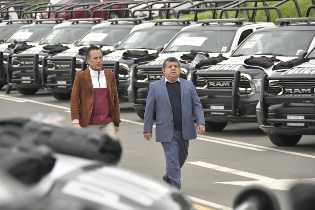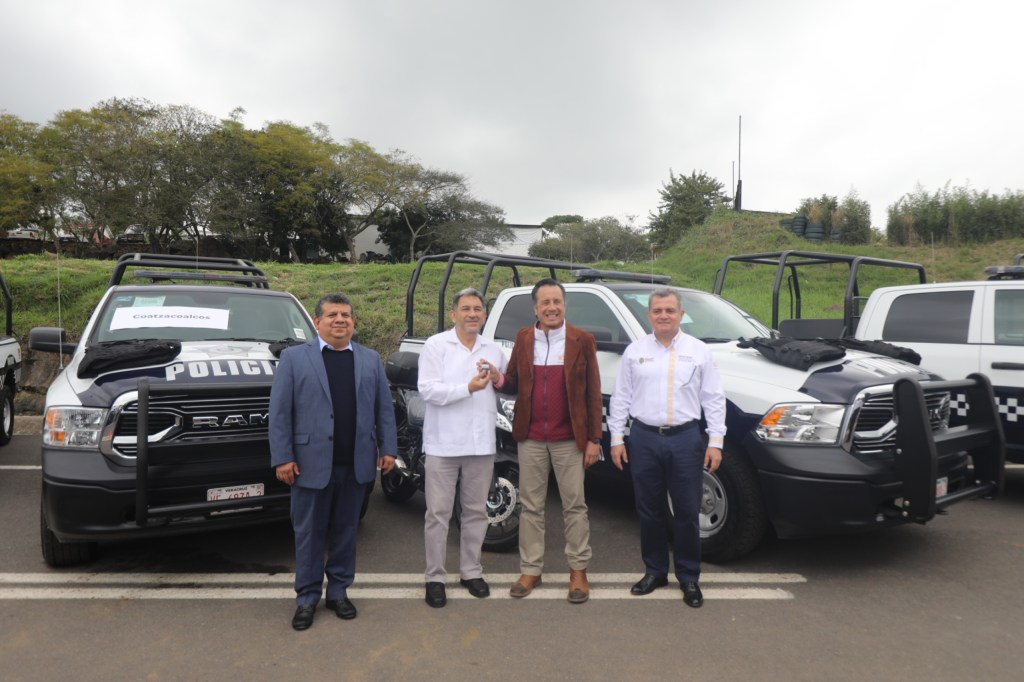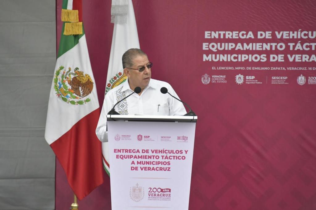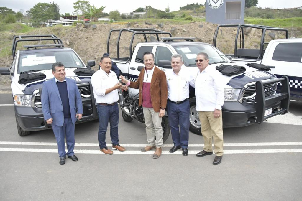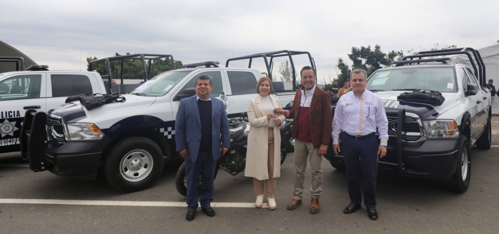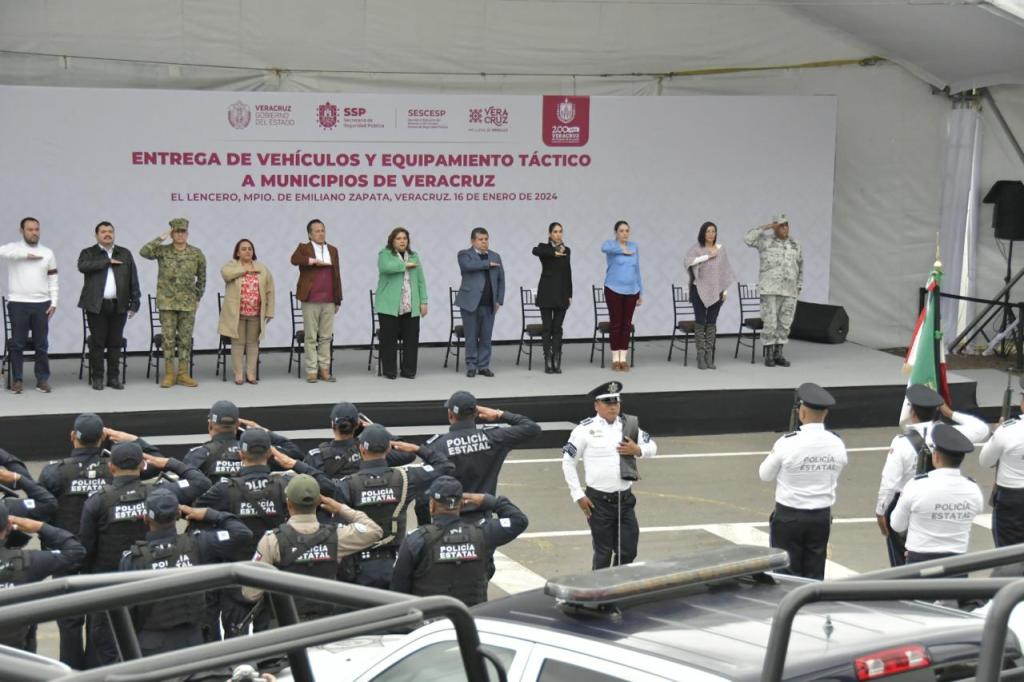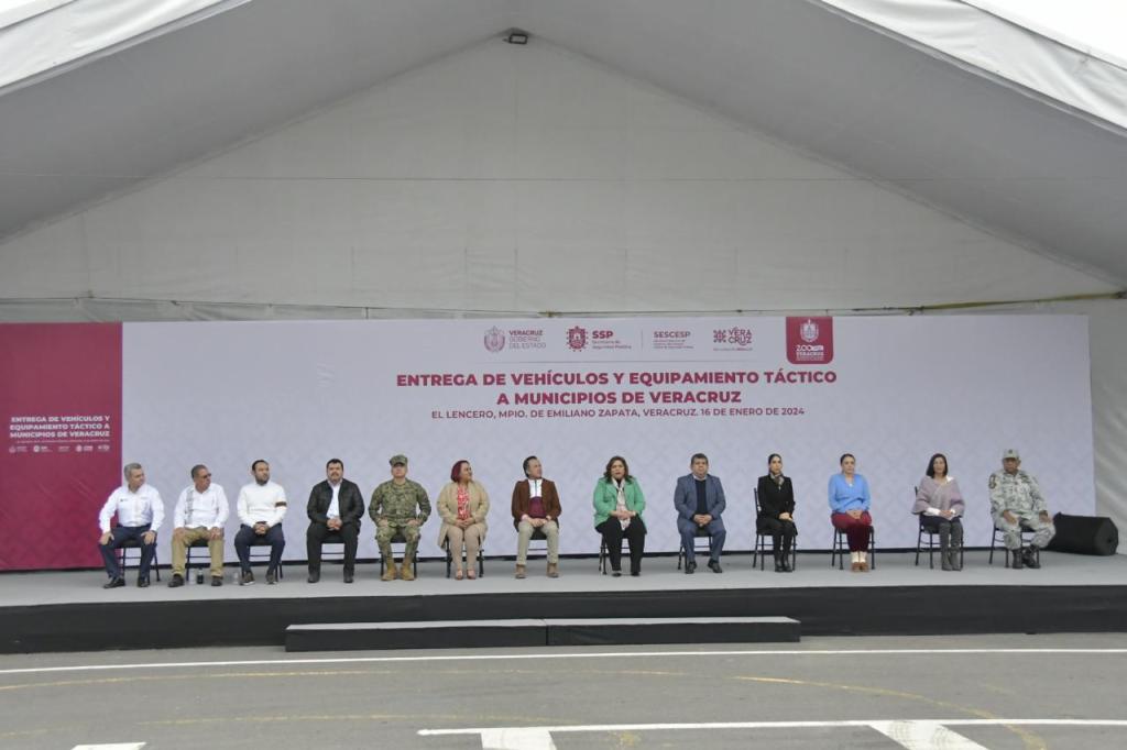 Emiliano Zapata, Ver., 16 de enero de 2024.- Para acciones vigilancia, protección ciudadana y prevención del delito, el Gobierno estatal dotó de vehículos y equipo a 40 ayuntamientos por un monto superior a los 112 millones de pesos del Fondo para el Fortalecimiento de las Instituciones de Seguridad Pública.