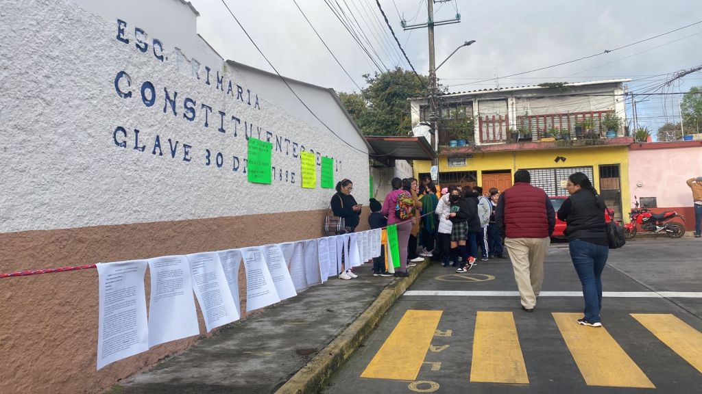 Xalapa, Ver.- Padres de familia de alumnos de la Escuela Primaria Federalizada Constituyentes de 1917, ubicada en Xalapa bloquearon el acceso a la institución educativa para exigir la destitución de la directora María Eugenia Meza Rivera por diversas irregularidades al interior de la escuela.