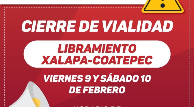 La dependencia estatal informa que la justa deportiva se desarrollará los días viernes 9 y sábado 10 de febrero en horario de 7 de la mañana a 3:30 de la tarde sobre el libramiento Xalapa – Coatepec; por lo que se cerrará en su totalidad dicha vía de comunicación y así buscar no afectar de manera significativa la circulación cotidiana en los municipios.