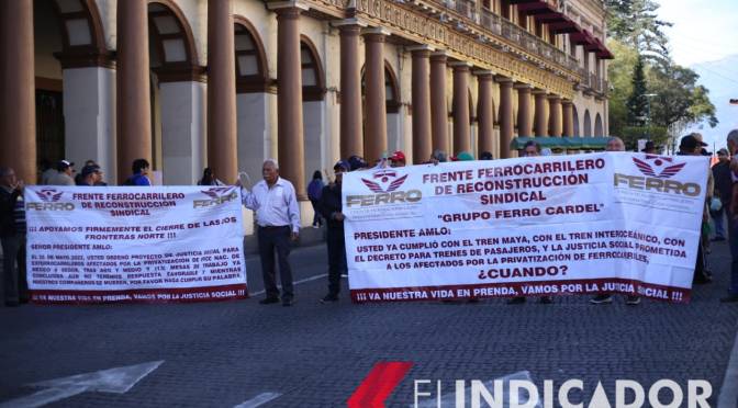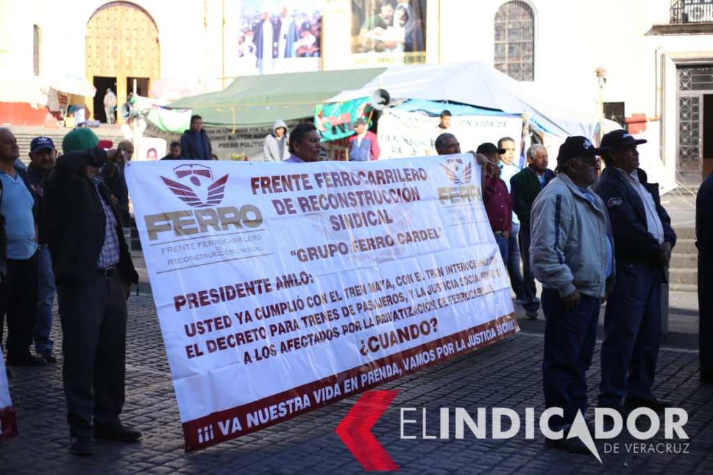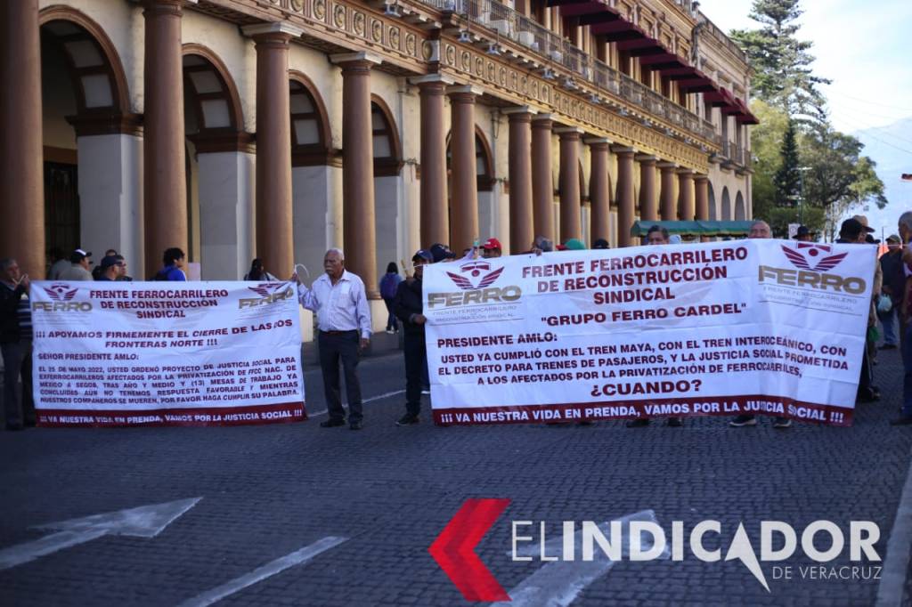 Xalapa, Ver.- Para exigir la reparación del daño tras la privatización del Sistema Ferroviario de México, integrantes el Frente Ferrocarrilero de Reconstrucción Sindical bloquearon de manera intermitente la calle de Enríquez en Xalapa.