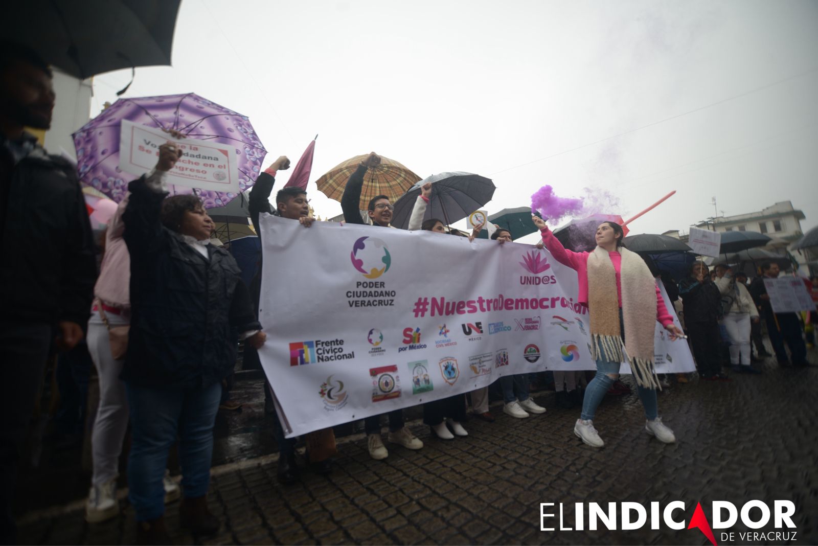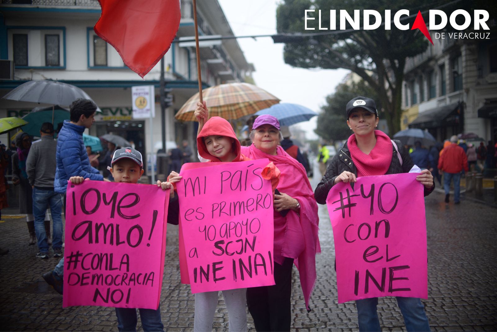 Xalapa, Ver.- Familias enteras, catedráticos e investigadores universitarios, empresarios xalapeños y militantes de partidos participaron en la llamada Marcha por la Defensa de la Democracia.