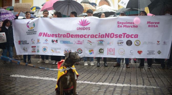 En sus manos llevaban pancartas con las leyendas “Democracia sí, populismo no”, “Nuestra Democracia No se Toca” y otras, de manera pacífica se congregaron este domingo en Xalapa como se hizo en cuando menos 100 ciudades del país.