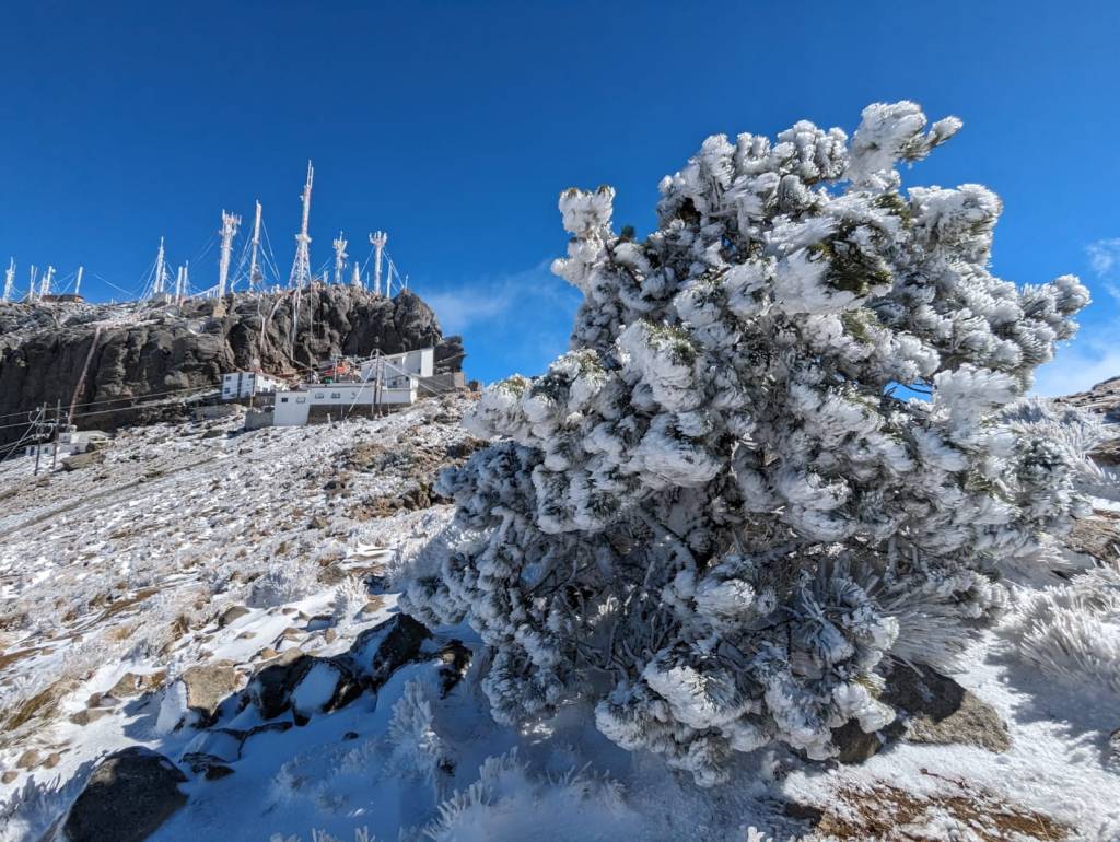 Xalapa, Ver.- Elementos de la Secretaría de Protección Civil del Estado, Protección Civil Municipal, Comisión Nacional de Áreas Naturales Protegidas (CONANP), policía municipal y Cruz roja llevan a cabo operativo de seguridad en la zona del Parque Natural Cofre de Perote, derivado de la nevada registrada la noche del sábado y madrugada de este domingo.