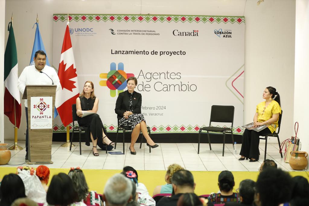 Papantla, Ver., 22 de febrero de 2023.- La Organización de las Naciones Unidas, Veracruz y Canada suman esfuerzos para erradicar la trata de personas con el lanzamiento del proyecto “Agentes de Cambio”, con el cual refuerzan las herramientas que permitan evitar este tipo de acciones así como la desaparición forzada.