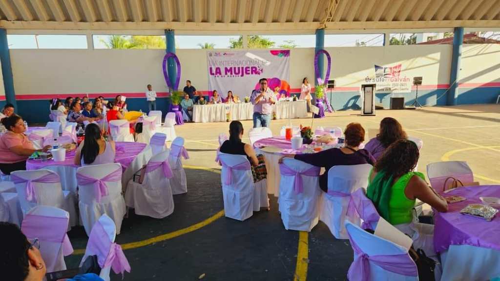 Úrsulo Galván. – Como parte de la conmemoración del Día Internacional de la Mujer, el día 8 de marzo (8M), el Instituto Municipal de las Mujeres (IMMUJER), que dirige Claudia Utrera Ramírez, realizó una convivencia con mujeres destacadas en diferentes sectores de la sociedad galvanense, contando con la distinguida presencia del alcalde, Lic. Eder Jero Hernández Lara y su esposa, la presidenta del Sistema DIF municipal, Lic. Vianney Hernández Vizuet.