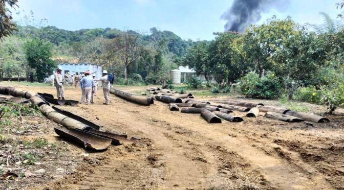 13 de marzo de 2023, Agua Dulce, Ver.- A las 13:00 hrs fuerzas de tarea de PEMEX en coordinación con SEDENA, SEMAR, Guardia Nacional, CLAM y PC municipal reportan como controlado un incendio registrado a las 8:55 hrs en un ducto fuera de operación en el municipio de Agua Dulce.