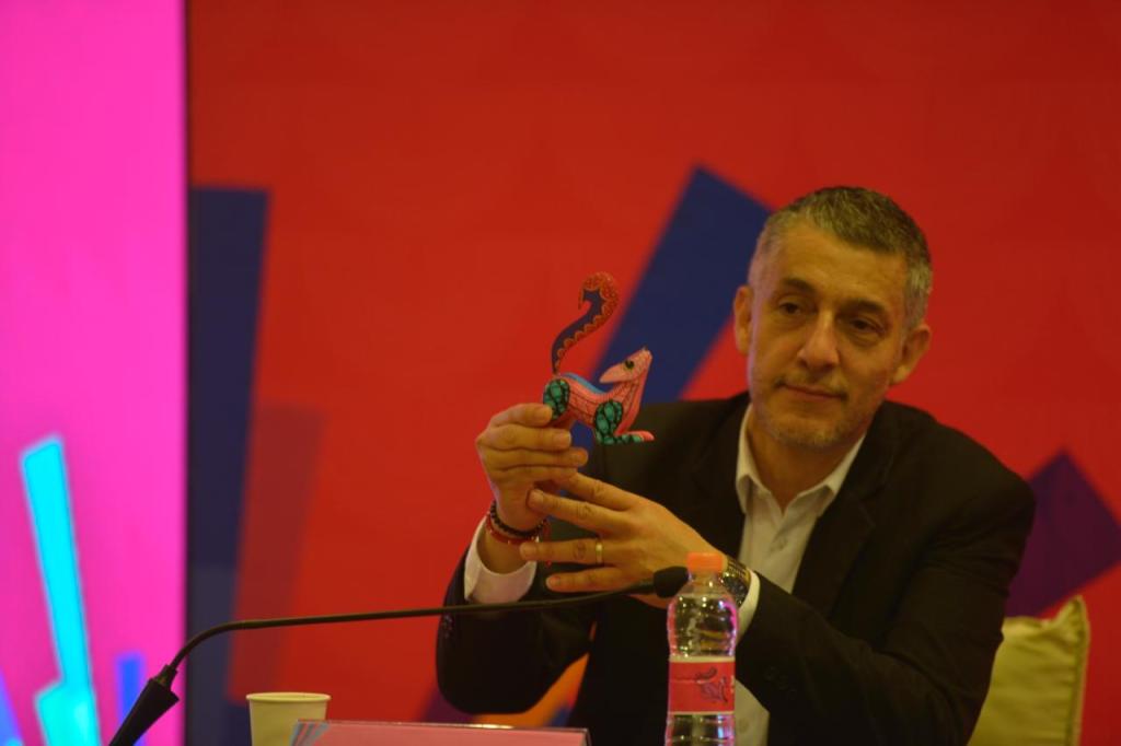 En la conferencia de prensa se hizo la presentación del video promocional, el alebrije que este año será la mascota, las artesanías para las y los ganadores y la playera oficial del evento.