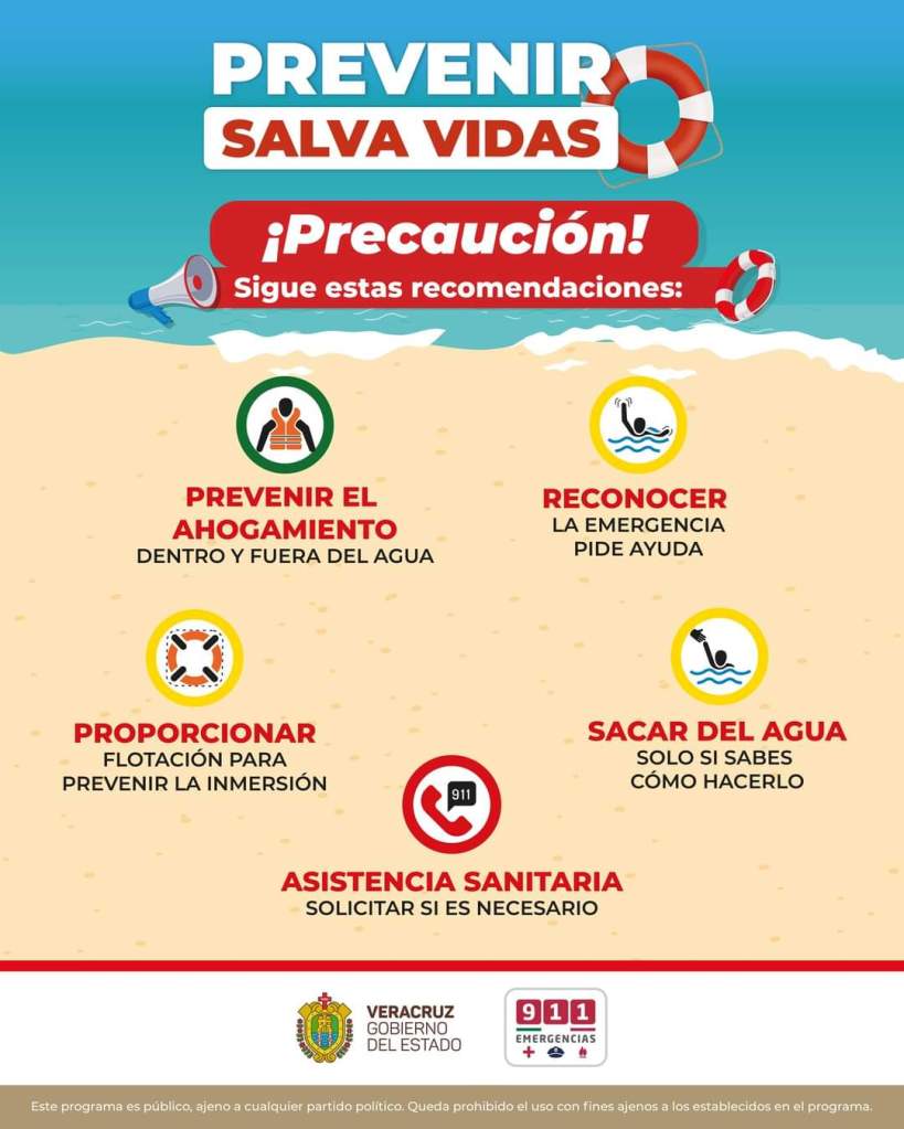 Asimismo, si visita playas, ríos, albercas o lagunas debe acatar las indicaciones y recomendaciones de cada lugar para salvaguardar su vida.
