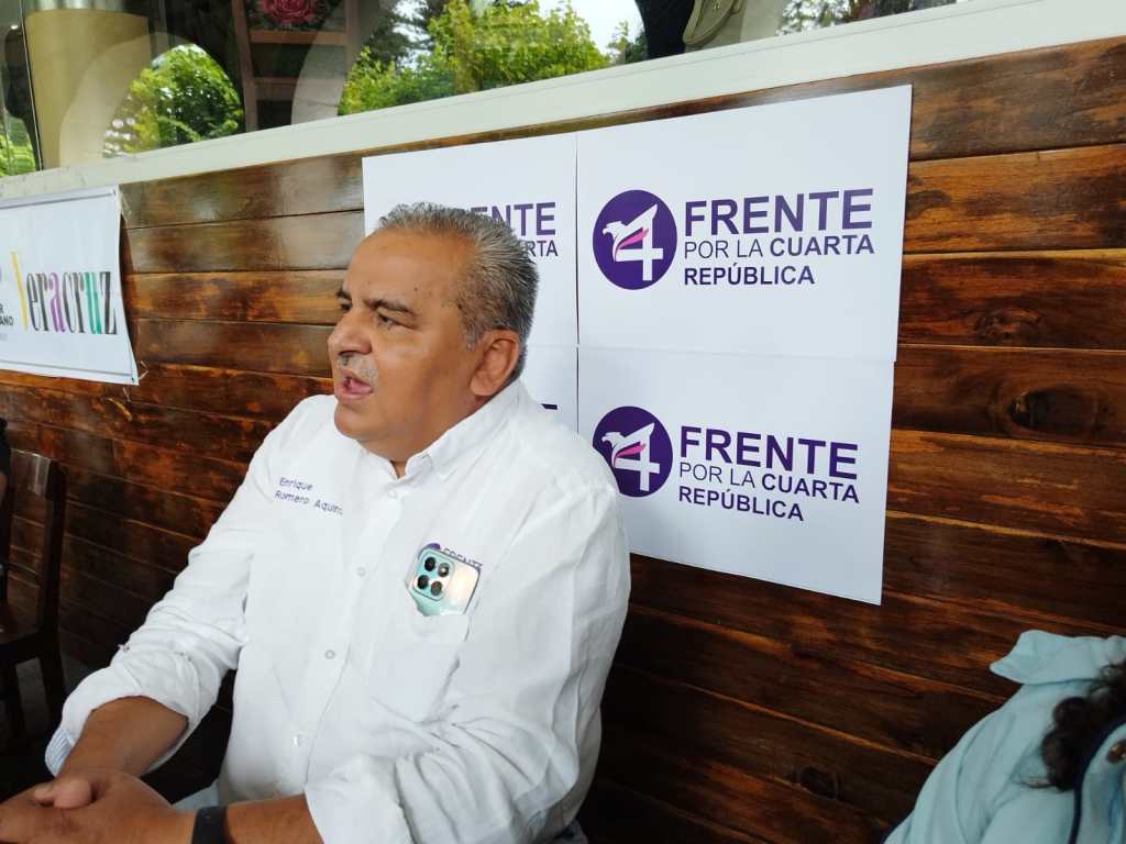 Xalapa, Ver.- Enrique Romero Aquino representante del llamado Frente por la Cuarta República hizo un llamado para que se frene la presunta violencia política en razón de género contra la candidata de la coalición Sigamos Haciendo Historia, Rocío Nahle García.