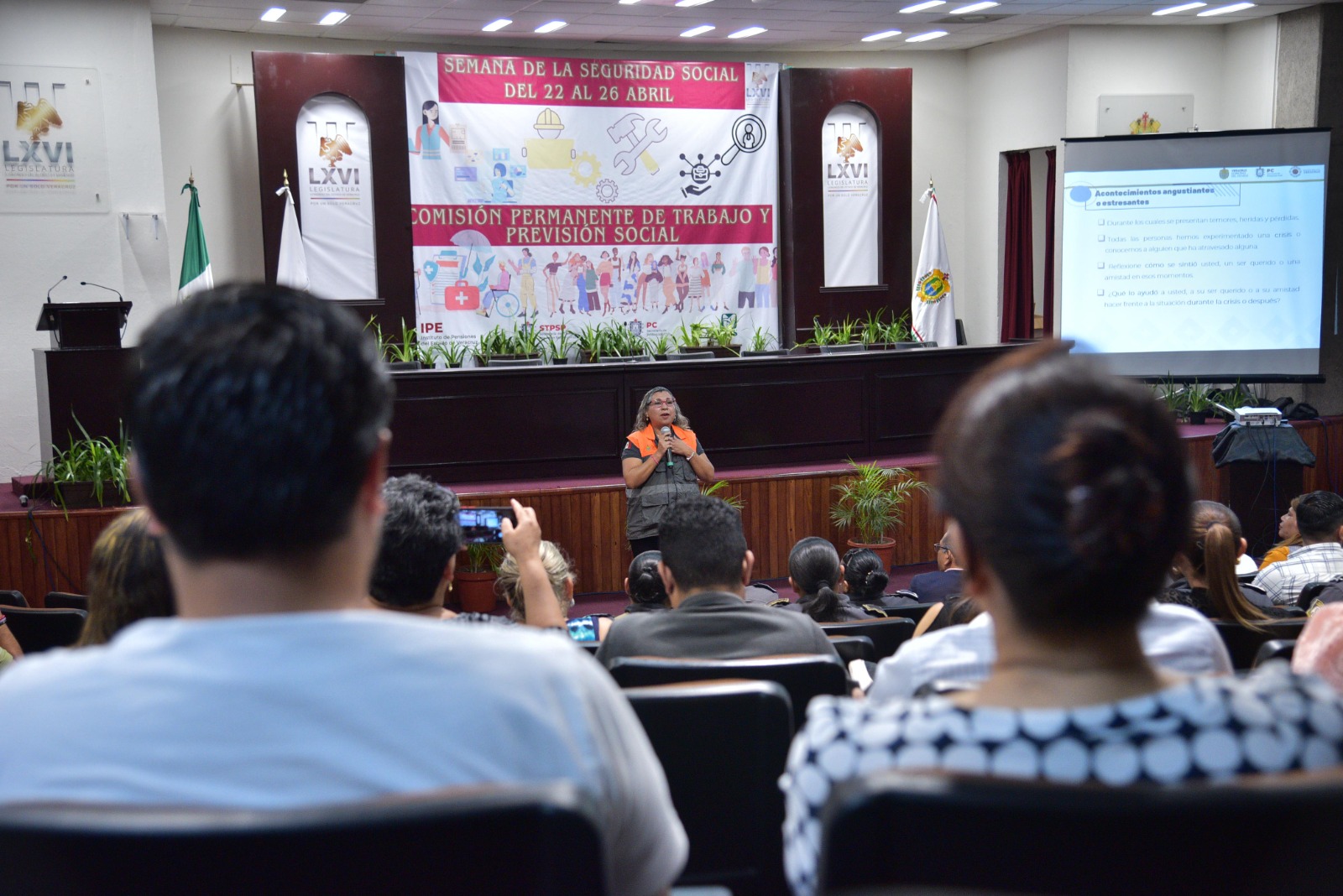 • Como parte de la Semana de la Seguridad Social en el Congreso, personal de la Secretaría de Protección Civil imparte la charla Primeros auxilios psicológicos.