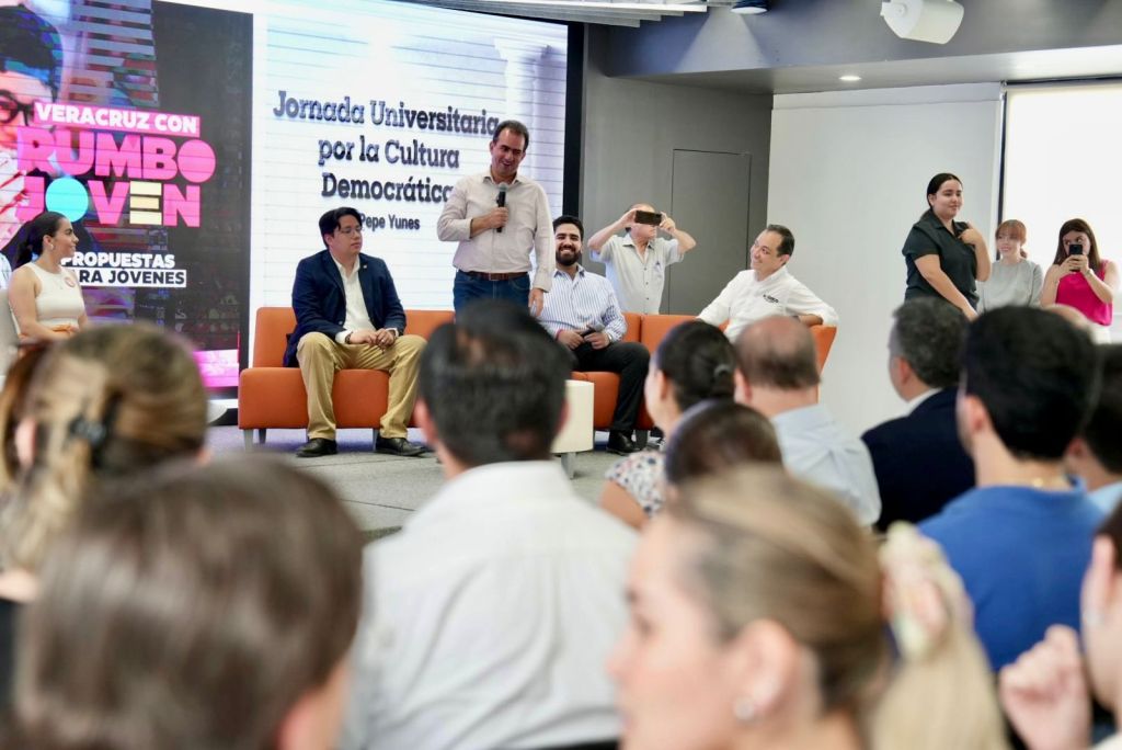Xalapa, Ver., 30 de abril de 2024.- Veracruz tendrá un Gobierno de Verdad que será para las y los estudiantes y docentes, aseveró Pepe Yunes al asistir como invitado a un diálogo con universitarios y académicos, a quienes presentó sus propuestas para mejorar y dignificar la vida de quienes ya son protagonistas del desarrollo de su estado y de su país.