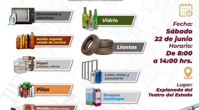 Indicó que se estarán recibiendo diversos residuos como aparatos electrónicos y eléctricos, aceite vegetal usado de cocina, papel, pilas, metales como cobre, bronce, antimonio, acero inoxidable, plásticos (pet, hdpe, pp), vidrio, llantas, latas, botes y cancelería, envases multicapa y radiografías.