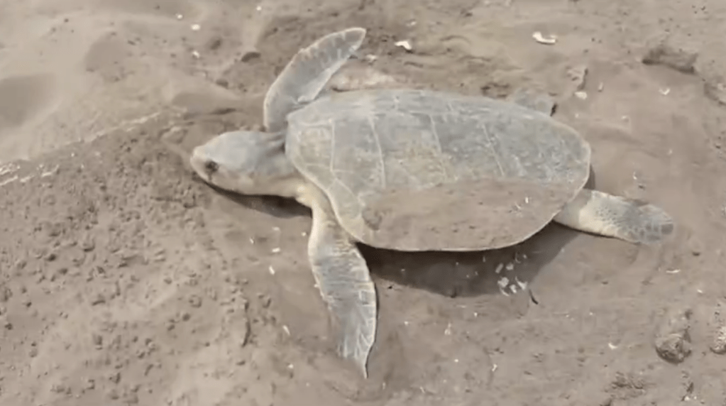 Agregó que la tortuga cuando sale del mar mide el terreno, la temperatura, l a humedad y si empieza a cavar el nido y no hay suficiente humedad se regresa al mar hasta encontrar un lugar apropiado.