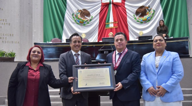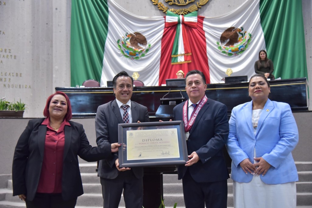 Por su incansable promoción de las energías limpias y la generación de proyectos ante el Cambio Climático, la LXVI Legislatura de Veracruz entregó a Horacio Zárate Acevedo, en Sesión Solemne, la Medalla al Mérito por la Defensa y Mejora del Medio Ambiente 2024.