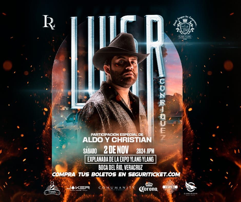 El sonorense Luis R Conriquez, se presentará en la explanada de la Expo Ylang Ylang de Boca del Río, el próximo 2 de noviembre del presente año, dónde cautivará con sus interpretaciones a los ahí presentes, ya que pone pasión en cada tema que canta, como : Si no quieres no, Que se cuide, Malas rachas, El Búho, entre muchos más, haciendo que tanto jóvenes como mayores se unan en admiración a este gran talento.