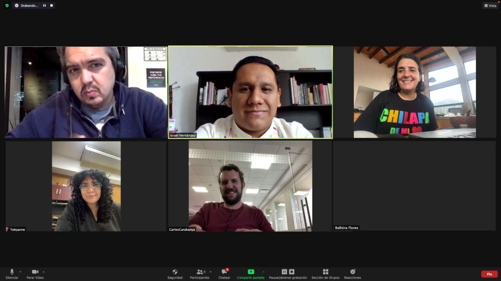 El encuentro virtual contó con la participación de las 5 personas integrantes del Jurado: Andalusia K. Soloff, Balbina Flores, Tobyanne Ledesma, Carlos Carabaña y Silber Meza.