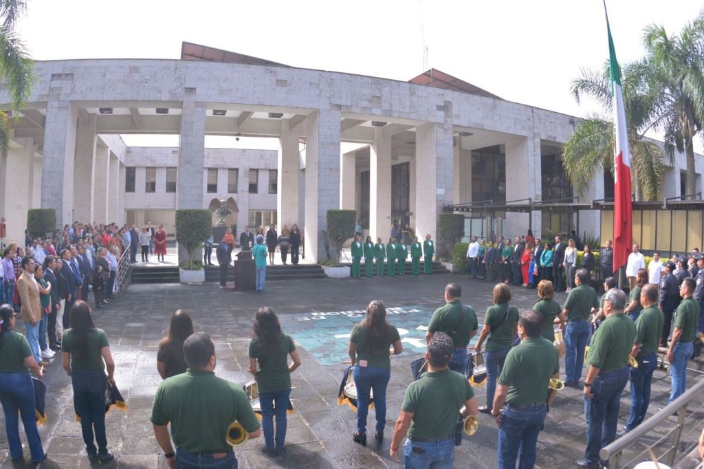 Como parte de este acto y con el apoyo de la banda de guerra y escolta del Sindicato Único de Trabajadores al Servicio del Poder Legislativo (SUTSPL) se realizaron los honores a la Bandera.