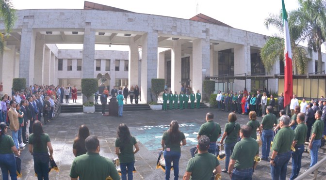 Como parte de este acto y con el apoyo de la banda de guerra y escolta del Sindicato Único de Trabajadores al Servicio del Poder Legislativo (SUTSPL) se realizaron los honores a la Bandera.