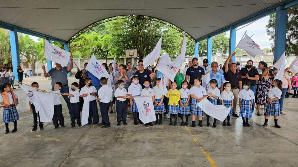 “Me da mucho gusto el poder aportar a la educación porque creo simplemente que, si se invierte en la educación, no se invierte en el futuro, se invierte en el presente de nuestras niñas y niños; yo quiero agradecer a los padres de familia que el día de hoy nos acompañan responsablemente, ustedes forman a la comunidad escolar de estas escuelas hermanas, hicimos el compromiso de que este año se iba a rehabilitar este domo y el día de hoy estamos cumpliendo”.