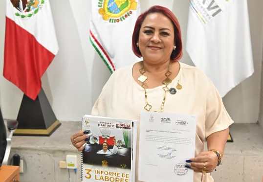Xalapa, Ver.- En cumplimiento de lo dispuesto en la Ley Orgánica y en el Reglamento para el Gobierno Interior, ambos del Poder Legislativo del Estado de Veracruz, la Presidenta de la Mesa Directiva del Congreso del Estado, Diputada Adriana Esther Martínez Sánchez, hizo oficial la entrega de su Tercer Informe de Labores Legislativas.