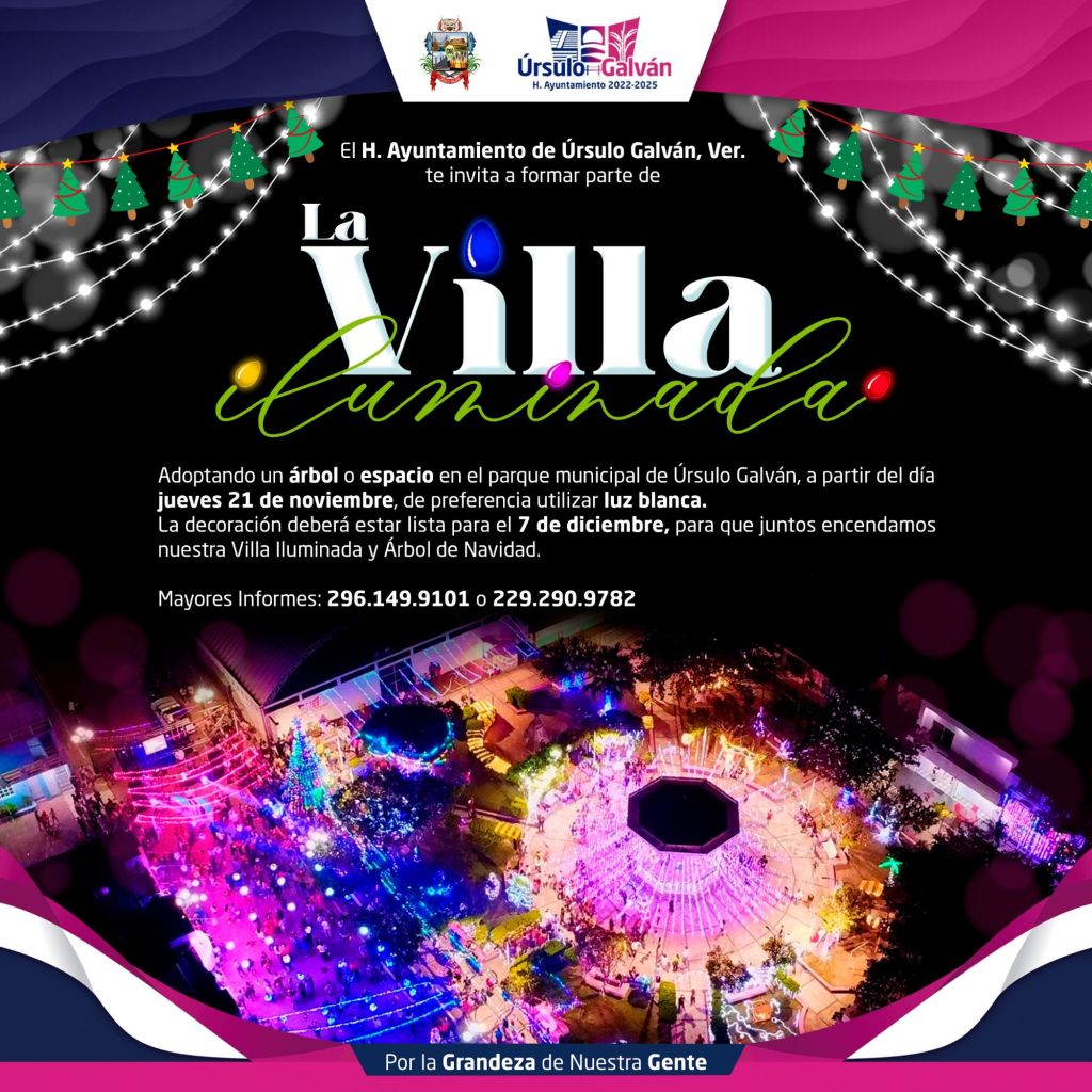El H. Ayuntamiento que preside el licenciado Eder Jero Hernández Lara, tiene el gusto de invitarlos a participar en la próxima Villa Iluminada 2024 en el parque de la cabecera municipal.