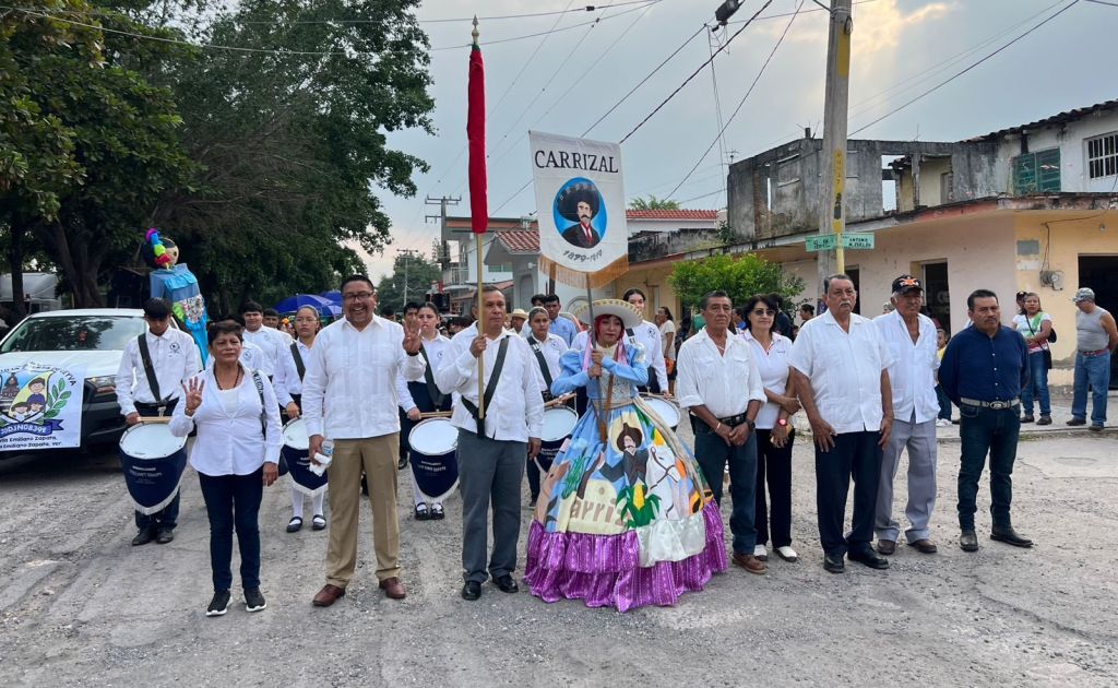 Genaro López Castro Agente municipal de Villa Emiliano Zapata, en conjunto con directores de planteles educativos de la localidad y ciudadanos ejemplares por su labor altruista en la región, encabezaron el tradicional desfile conmemorativo del 114 aniversario de la Revolución Mexicana.