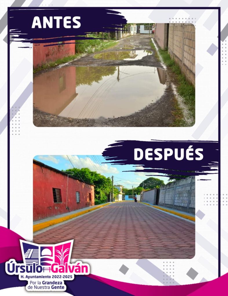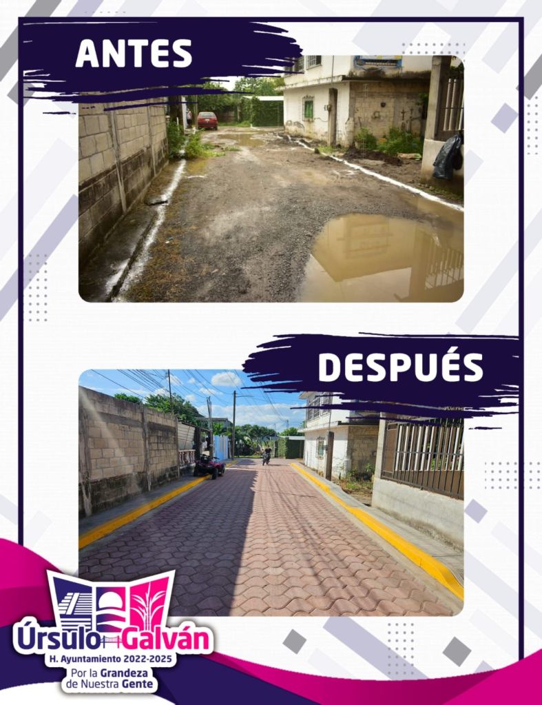 Úrsulo Galván, Ver. – Cumpliendo con el compromiso de mejorar la infraestructura de la cabecera municipal y a las 21 comunidades del municipio; el alcalde, Lic. Eder Jero Hernández Lara e integrantes del cabildo inauguraron la pavimentación con adoquín, guarniciones y banquetas en la calle Profa. Cira Gómez Rodríguez.