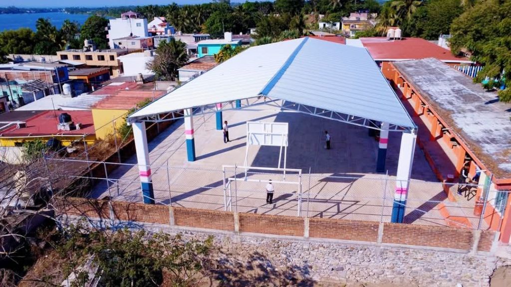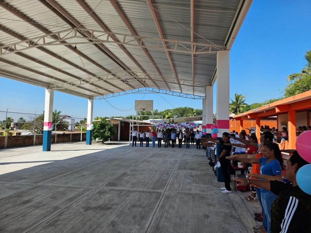 Úrsulo Galván, Ver.– Beneficiando a los estudiantes de la escuela primaria «Moisés Sáenz» de la comunidad de Playa de Chachalacas, el pasado lunes 25 de noviembre, el alcalde, Lic. Eder Jero Hernández Lara inauguró el nuevo techado en la cancha de este plantel, brindando un espacio digno para las actividades de los alumnos.
