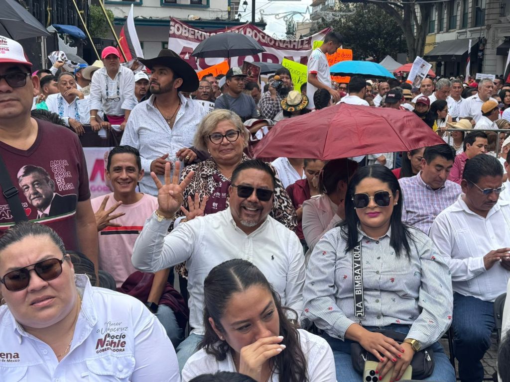 Xalapa, Ver.- Acompañado de ciudadanía de Emiliano Zapata, Gabriel Guzmán ‘el Arqui’ estuvo presente en el primer mensaje al pueblo emitido por la Gobernadora Constitucional de Veracruz Rocío Nahle.