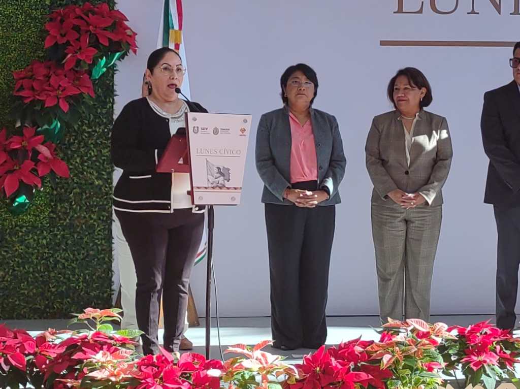En su mensaje en la explanada de la SEV, donde se llevó a cabo el primer homenaje a la Bandera de esta administración, dijo que se combatirá el analfabetismo y la deserción escolar.