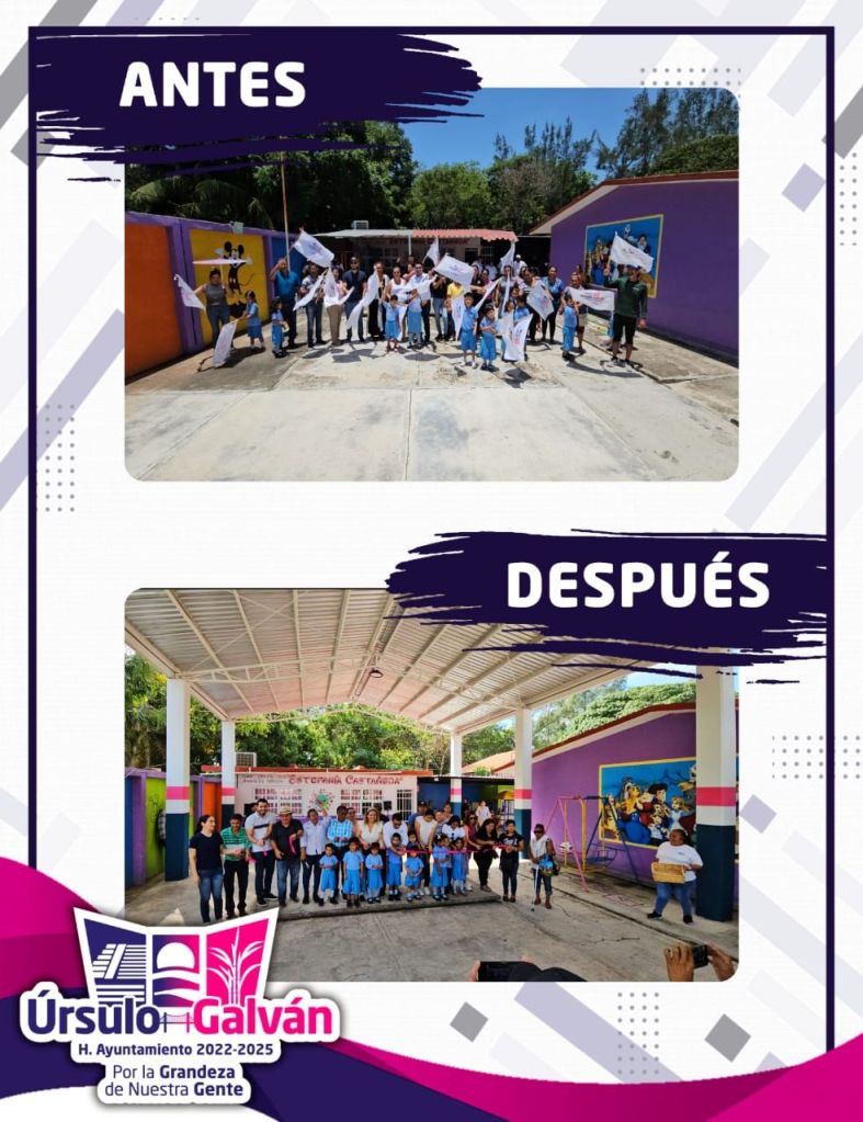 Úrsulo Galván, Ver. – De cara al Tercer Informe de Resultados; se inauguró una obra más, el techado en el jardín de niños «Estefanía Castañeda» de la comunidad de Cempoala, infraestructura con la que los pequeños no sufrirán haciendo sus actividades bajo las inclemencias del tiempo.