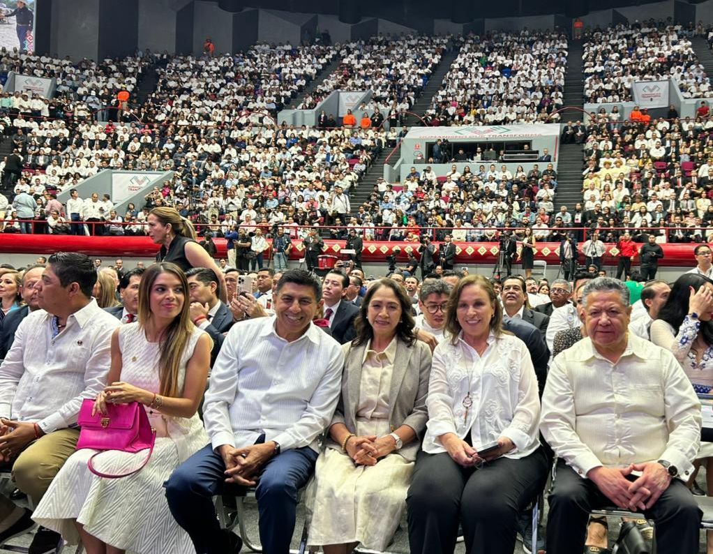 Tuxtla Gutiérrez, Chis., domingo 08 de diciembre de 2024.- La gobernadora de Veracruz, Rocío Nahle García, participó como invitada de honor en la toma de protesta del recién nombrado gobernador constitucional de Chiapas, Eduardo Ramírez Aguilar.