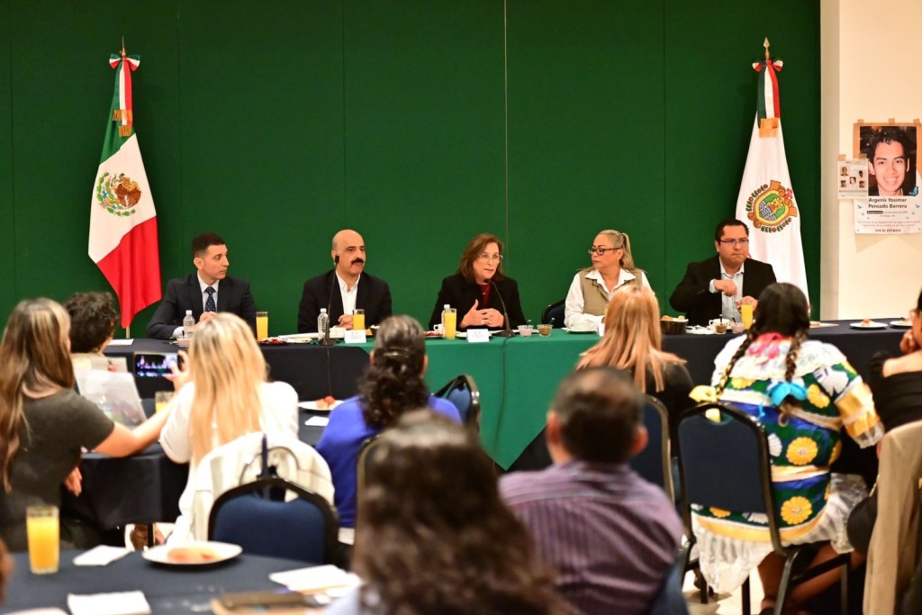 La Gobernadora estuvo acompañada por el secretario de Gobierno, Ricardo Ahued Bardahuil; la presidenta de la Comisión Estatal de Derechos Humanos, Namiko Matzumoto Benítez; el titular de la Comisión Ejecutiva de Atención Integral a Víctimas, Christian Carrillo Ríos, y el director general de Política Regional de la SEGOB, Adolfo Toss Capistrán.