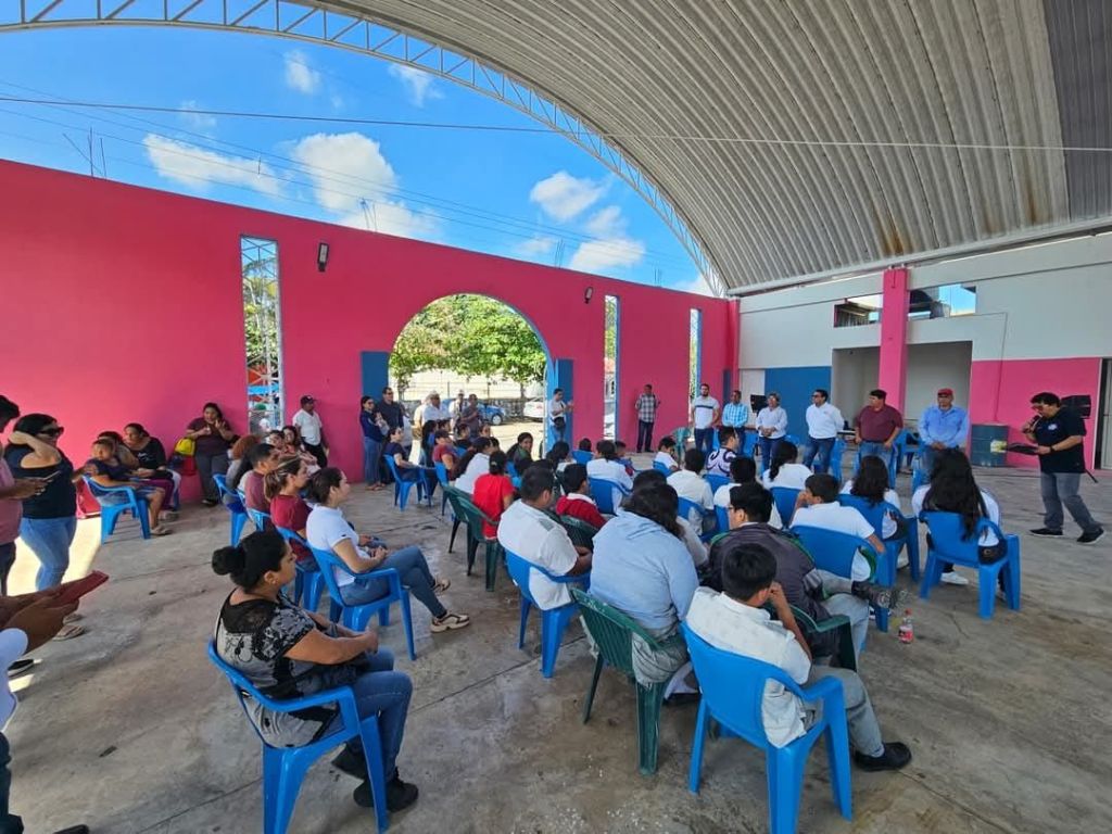 “Ese es el objetivo, de ir disminuyendo ese atraso que tuvimos durante muchos años, y que el día de hoy, me da muchísimo gusto estar con ustedes entregando una obra más que era una necesidad para el pueblo, un domo que tenía riesgo incluso de colapsarse, un espacio público que debería ser digno, pero lo dejaron mucho tiempo en el abandono, sin pintar, sin iluminar, con baños deteriorados”.