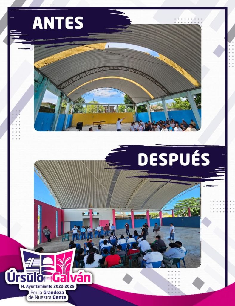 Úrsulo Galván, Ver. – Los integrantes del cabildo del H. Ayuntamiento, encabezados por el alcalde, Lic. Eder Jero Hernández Lara continúan entregando obras públicas de calidad en las comunidades más alejadas del municipio; en fechas pasadas, se llevó a cabo la inauguración de la rehabilitación del techado y salón social de la comunidad de Paso de Doña Juana.