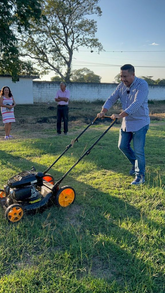 Rinconada,Emiliano Zapata.-Luego de varios recorridos y de peticiones por parte del comité ejidal y miembros de la sociedad civil de la localidad de Rinconada, recibieron de manos del Arquitecto y ciudadano Gabriel Guzmán Reyes, la donación de una podadora que beneficiará a más de tres mil quinientos jóvenes, que practican deporte en los seis campos deportivos de la región, además de trescientos estudiantes de los tres planteles educativos en los niveles básicos.