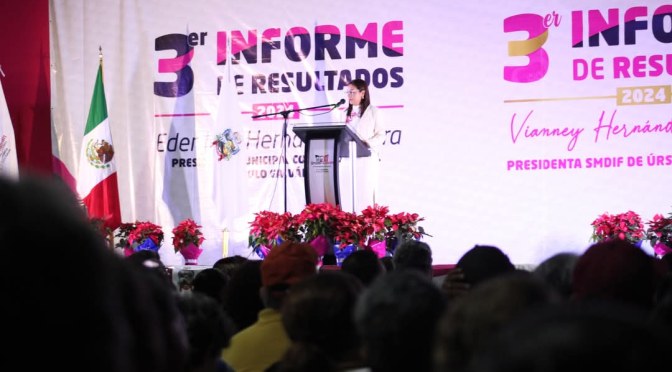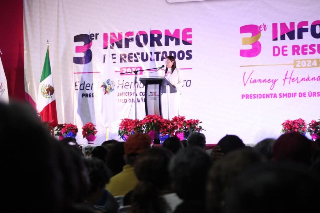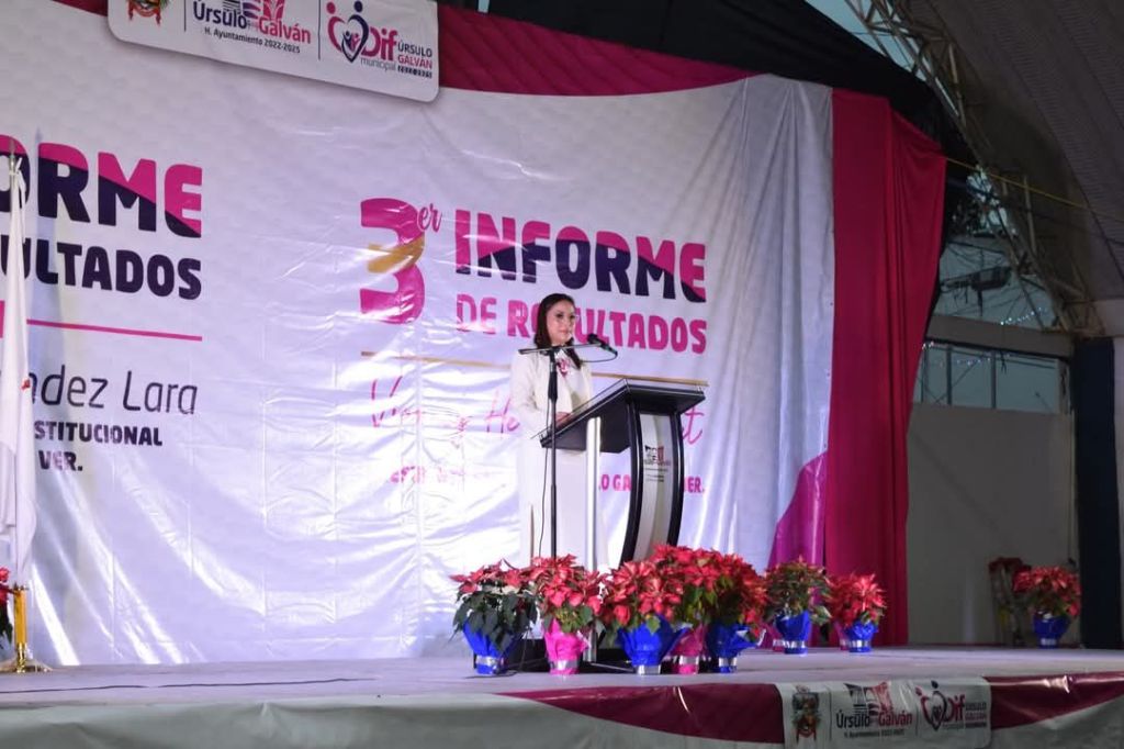 Úrsulo Galván, Ver. – Dando a conocer los alcances obtenidos en este 2024 en diferentes rubros que continuaron procurando el desarrollo integral de las familias galvanenses; la Lic. Vianney Hernández Vizuet, presidenta del Sistema DIF municipal (SDIFM), rindió su Tercer Informe de Resultados, el pasado martes 17 de diciembre en el domo de la cabecera municipal.