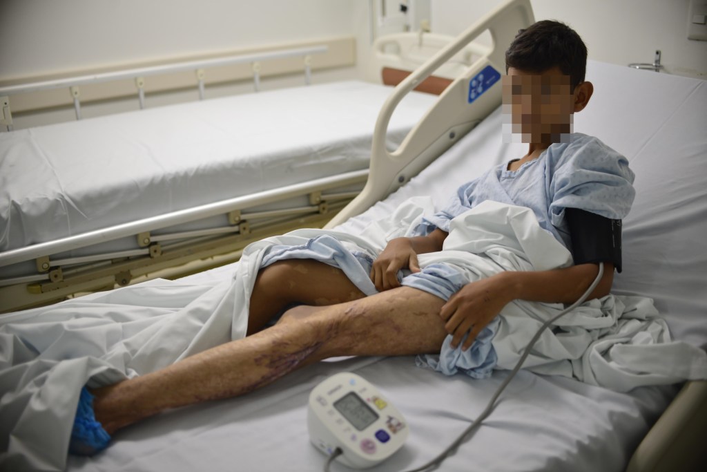 Este menor de edad estuvo hospitalizado por seis meses; a lo largo de ese tiempo estuvo atendido de manera profesional y gracias a esos cuidados el pequeño pudo ser uno de los candidatos para una intervención de los especialistas quienes pudieron corregirle una contractura severa en la pierna.