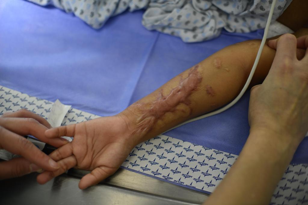 >Especialistas de Veracruz y Galveston, Texas, implantan injertos en la piel afectada de los pequeños.